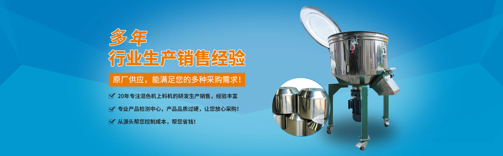 廣東紅寶機械科技有限公司專業(yè)生產(chǎn)混色機,干燥混色機,立式混色機,臥式混色機,塑料攪拌機、立式攪拌機、塑料混料機、不銹鋼攪拌機、螺旋上料機、彈簧上料機、粉體攪拌機、攪拌干燥機、臥式攪拌機、食品上料機、攪拌烘干機、塑料拌料機、塑料混合機、大型立式攪拌機等注塑機周邊設(shè)備。我司經(jīng)過多年的努力和研究,在攪拌粉末料這方面有了重大的突破。引得了很多客戶的肯定,特別是在國內(nèi)市場備受歡迎。公司可以免費提供機器試機和提供方案。